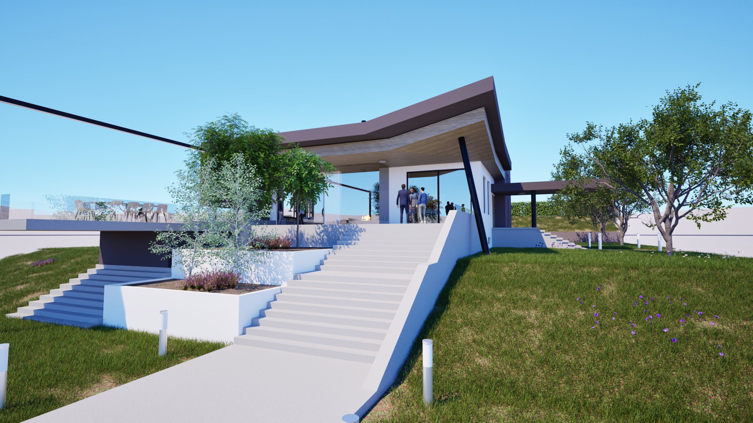 Materiality: The materials chosen for the exterior emphasize strength and durability. Stone, concrete, and textured finishes contribute to the fortress aesthetic, while natural tones ensure the house blends harmoniously with the hilltop setting. The rugged textures and muted colors help the residence feel grounded in its surroundings, while clean lines and minimalist detailing introduce a contemporary feel.